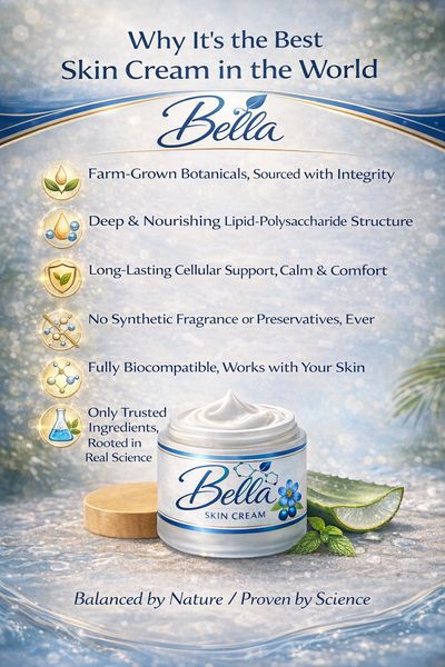 Bella Skin Cream is built around a lipid–polysaccharide matrix that mirrors the architecture of the skin’s own barrier